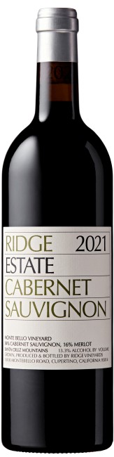 From the legendary Monte Bello estate vineyard, most of this 2021 Cabernet comes from the Klein Ranch portion of the famed Santa Cruz Mountains estate. An American Cabernet (blended with 16% Merlot) evocative of first-growth Bordeaux nuance and complexity. Freshly turned soils, bay leaf and sweet tobacco aromas segue into notes of pure black fruits. Sweet, ripe black plums open the palate with perfectly tart blackberries, muddled mint leaves, pencil shavings, and soaring acidity brighten this wine into a mineral-driven finish. This is a wine that, in 8-10 years, will surely be at its apex.
